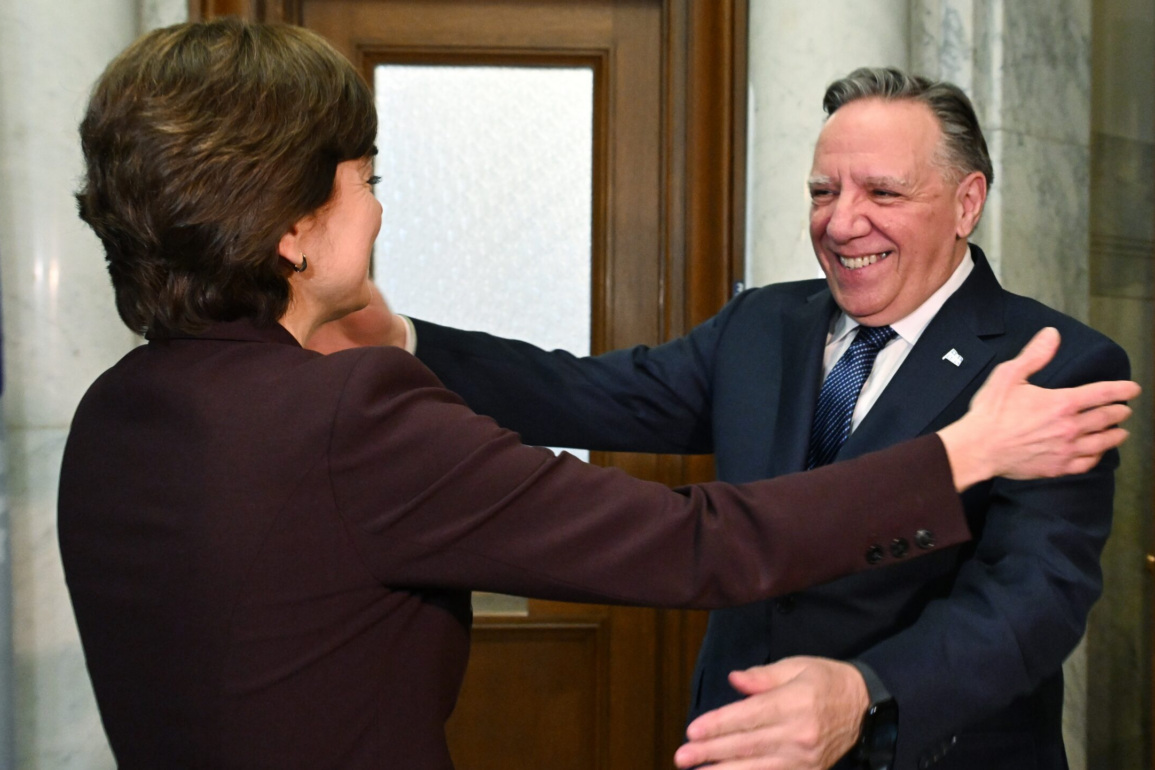 François Legault welcomed his successor, Christine Fréchette, to the Honoré-Mercier constructing on Tuesday for the official switch of energy.